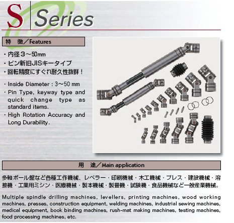 ซีรีส์S มีเส้นผ่าศูนย์กลาง 3-50mm มีการหมุนที่แม่นยำสูง มีความทนทานอย่างมาก ใช้กับเครื่องจักร เครื่องเจอะแกนหลาย เครื่องจักรการพิมพ์ เครื่องจักรงานไม้ เครื่องจักรก่อสร้าง การเชื่อม เครื่องทดสอบ เครื่องจักรผลิตอาหารและอุตสาหกรรมอื่นๆ ผลิตภัณฑ์มีซีรีส์ SC,SD,SP