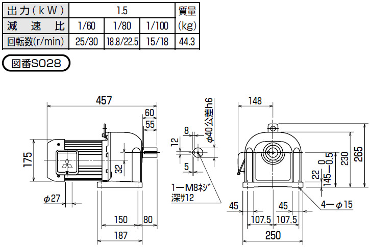 1.5kw 1/60 1/80 1/100 weight 44.3kg