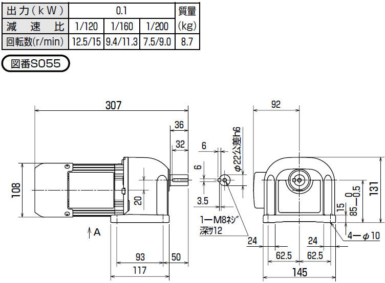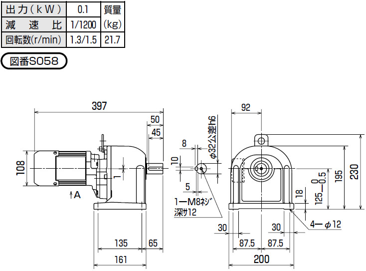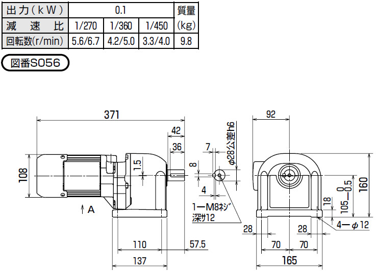 0.1kw 1/270 1/360 1/450 weight 9.8kg
