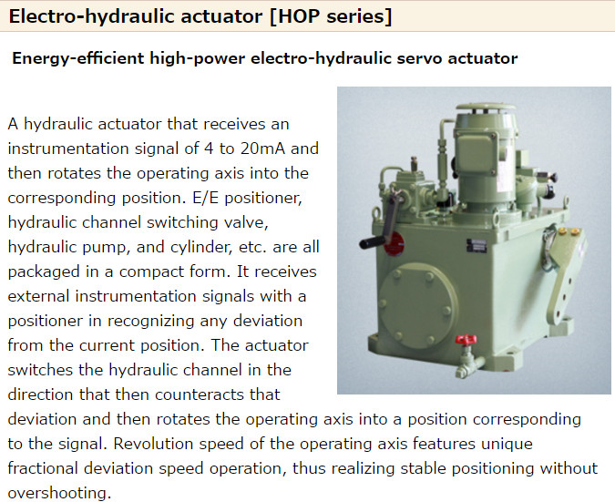 Home > Fluid Machinery > Valve > Okaya Seiritsu > Hydraulic controller >Okaya Seiritsu Electro-hydraulic actuator HOP series
